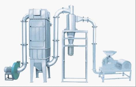 工作原理:物料由料斗經(jīng)螺旋輸送器進入粉碎室,粉碎物經(jīng)高速刀片剪切粉碎,通過負壓風運的方法把物料運入旋風分離器,袋式除塵器、排出物料達到產(chǎn)品的要求。